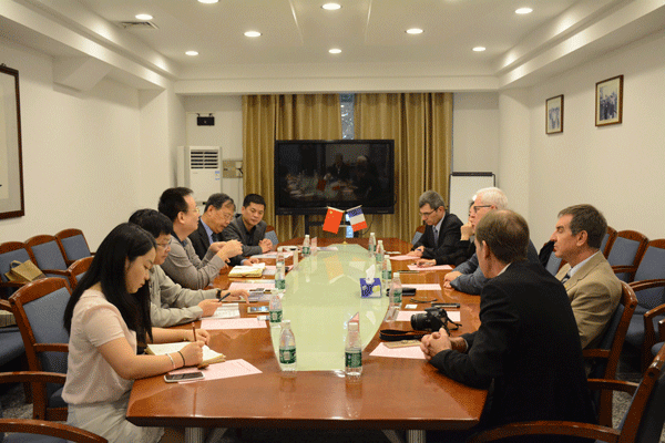 4月28日上午,法国欧洲酒店业职业培训与推广中心(CEFPPA)总裁Roger Sengel、首席执行官Frank Sellier等一行5人来我校访问。我校董事长谢可滔先生会见了代表团一行。广州市白云工商技师学院校长李孟强、广东白云学院副校长沈根生教授,广东白云学院校长助理肖军田、广州市白云工商技师学院系主任马庆文、国际交流处虞凯惠等参加了会谈。星·法国酒窖餐厅总裁李阳女士专程从深圳赶来我校引荐(CEFPPA)并参加了会谈。
