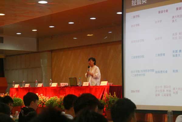 专题会为新生介绍了我校与10个国家25所国外大学建立了40多项联合培养合作关系的布局,我校制定的有关国际教育合作的各项规章制度,我校为学生提供的各项国际教育的服务及其“出国留学奖学金”。