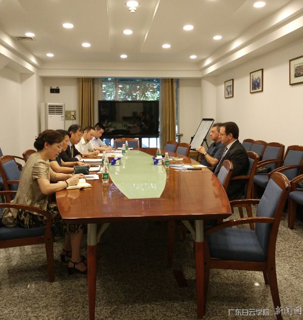 谢少华副董事长向来宾介绍了我校的发展历史和办学特色,并回顾了她访问科文大学的美好记忆,表示对科文大学工程学中运动赛车专业和艺术设计学中数字传媒专业深刻印象, 希望两校有机会在这两个专业进行合作。 沈根生教授表示非常高兴在广东白云学院欢迎前同事和好友Daryoush Habibi 教授和Clive Barstow 教授来访学校,对接下来的合作充满了期待。曹玉华教授和陈华钢教授分别介绍了我校重点发展专业 (数字传媒和机电一体化机器人)的优势。