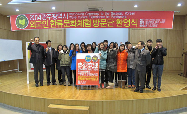 2014年1月11日-2014年1月16日,我校外国语学院朝鲜语系“3+1”国际合作班的师生14人应邀前往韩国开展韩国文化体验和生活体验活动,参观了湖南大学和湖西大学。整过活动期间,大家过得充实而愉快,且受益匪浅。