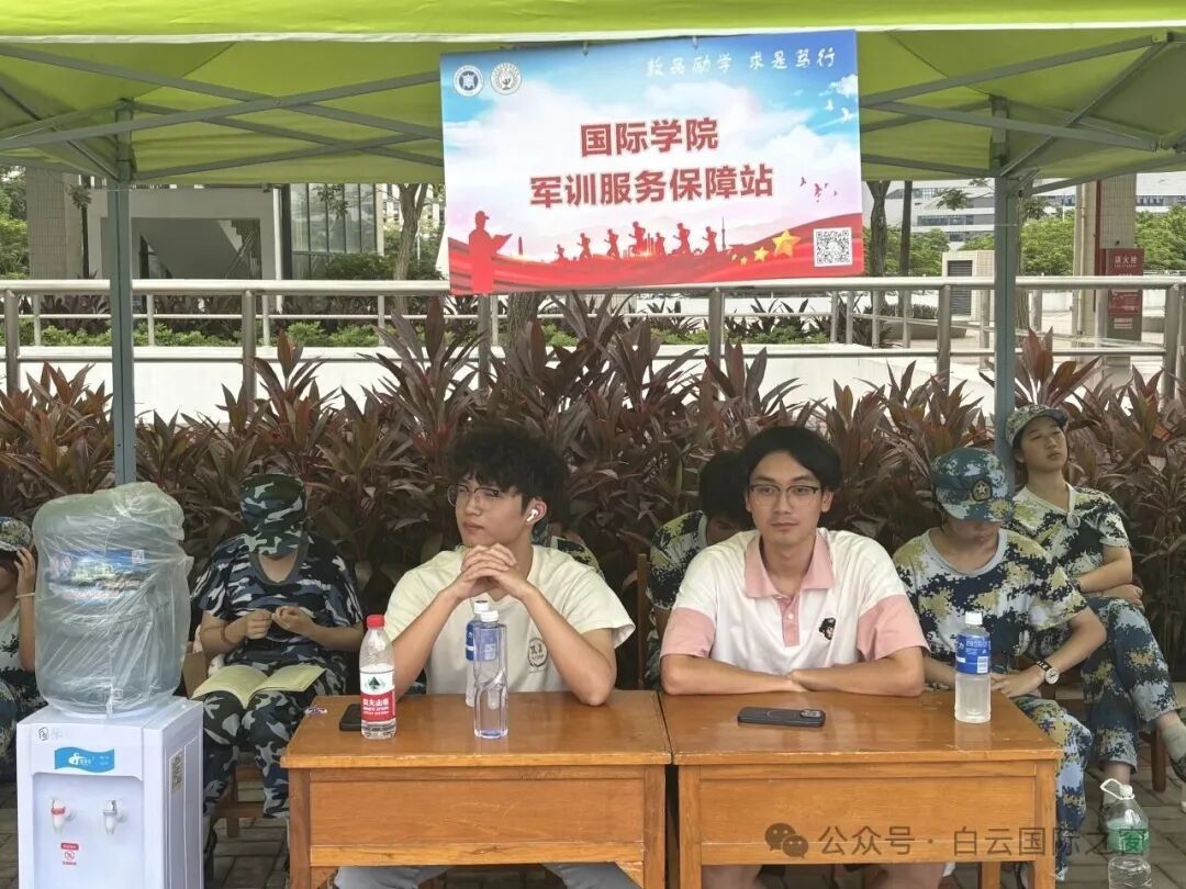 训练间隙,国际学院军训服务保障站成为了同学们的 “能量补给站”。站点不仅备有充足的饮用水等物资,还有工作人员时刻关注着同学们的状态,为大家的军训生活保驾护航。在这里,同学们可以稍作休整,补充能量,以便以更饱满的精神状态投入后续训练。