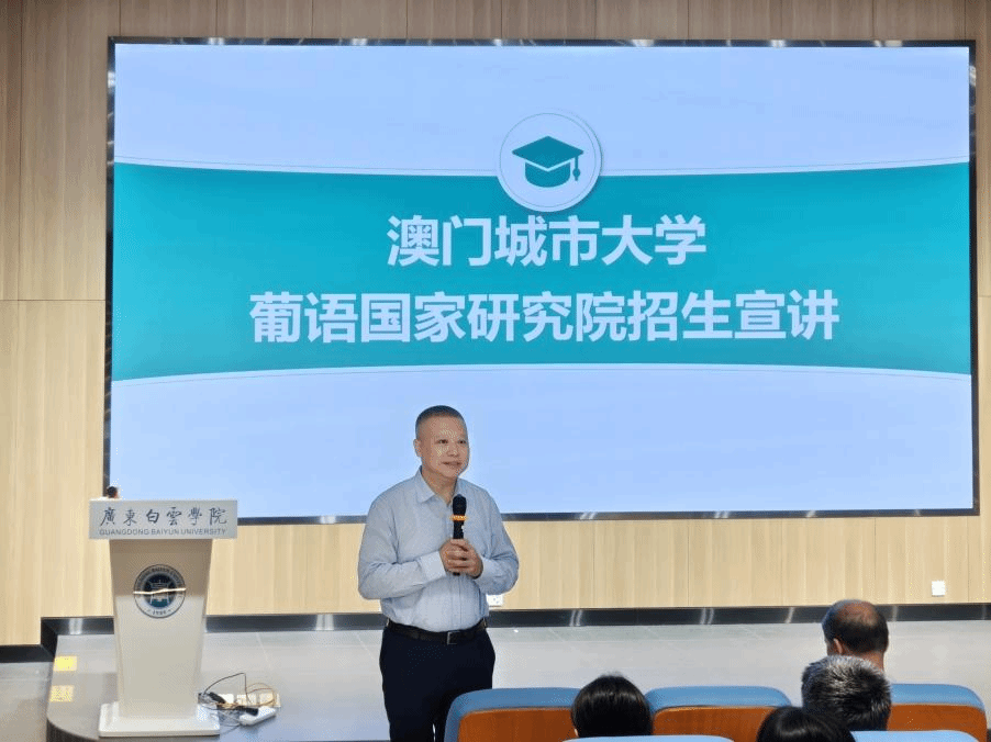 当日下午4时50分,澳门城市大学在我校北校区图书馆二楼学术报告厅举办了专场宣讲会。叶桂平副校长介绍了澳门城市大学及葡语国家研究院的办学特色、学科优势及国际化发展前景,周佳圆助理教授则详细解读了硕士课程的设置方向、申请条件、奖学金政策及报读流程。宣讲会现场,我校学生积极提问,就葡语国家研究、跨境实习机会、学历认可等问题与代表团教师进行了踊跃互动,反响十分热烈。
