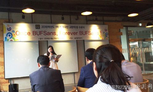 近日,釜山外国语大学举行了2016年国际留学生毕业典礼,有近两百名国际留学生参加。我校2013级英语专业(英韩方向)蔡贞宇同学因在校期间出色的表现被校方选定为发言代表,在现场分别用英语和韩语2种语言做了毕业发言,精彩的发言不仅让国际留学生对她这个“黑头发,黄皮肤”的中国留学生印象深刻,也让国际留学生记住了她所代表的“广东白云学院”。蔡贞宇同学在发言中感谢釜山外国语大学老师辛勤的教导,也感谢我校为其提供的良好国际交流平台,让她在国外的留学生活中熟悉了两国文化,掌握了两种语言,综合素质也得到了提升。为进一步历练自己,提升自己,蔡贞宇同学选择继续在釜山外国语大学深造一年。(国际合作与交流处张晓会供稿)